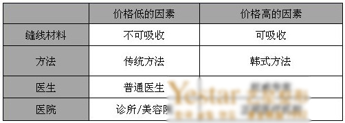 影响价格因素的表格