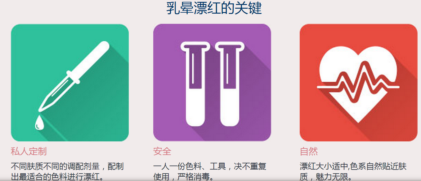 女性乳晕应是粉红色的,但有些女性雌性激素较高,造成乳晕发黑,外观难看不雅。乳晕漂红能让乳房“娇点”恢复少女时的粉嫩诱惑,提高女性魅力与自信。