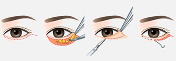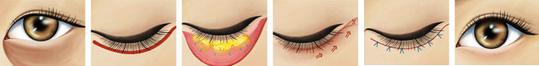 【作用与原理:】沿着下眼缘切开后,即将脂肪重置后把肌肉和皮肤进行锁紧提升,去除多余组织,缝合后固定。