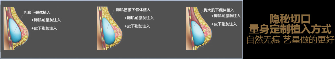 曼托假体隆胸采用腋窝小切口模式进行,将尺寸、形状合适的假体植入到胸大肌下方,从而达