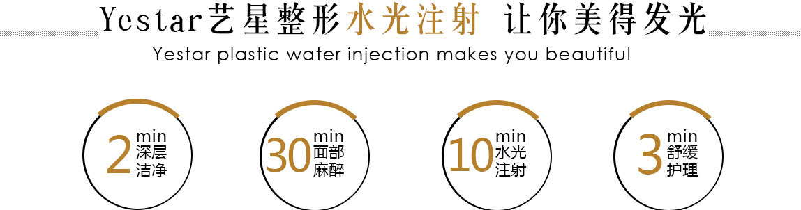 Yestar艺星整形水光补水借助专利智能仪器将具备超高能储水的玻尿酸,并结合小分子BOTOX、维C等,以独特比例均匀分布于真皮层,在皮下形成网状交叉式结构,相当于肌肤真皮层铺上一层高度锁水的面膜,直接填补流逝的营养成分,360°全方位美肌,实现肌肤全面年轻效果。