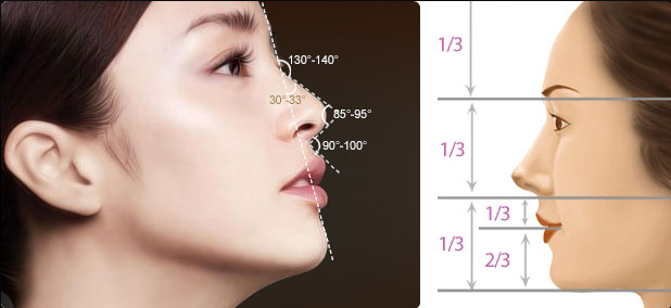 ● 鼻额角理想一般为130-140° ● 鼻面角理想为30-33°
